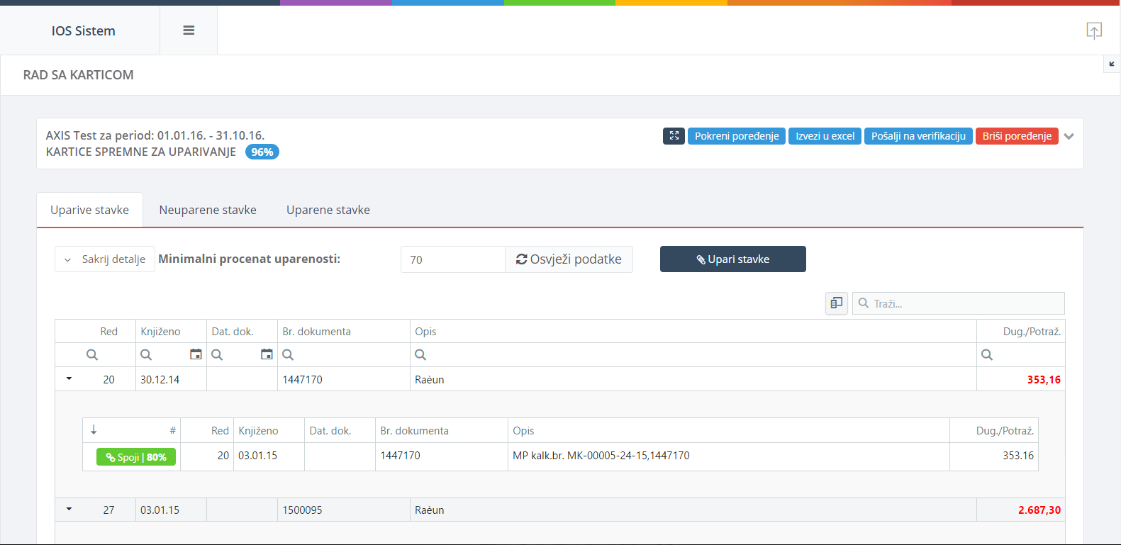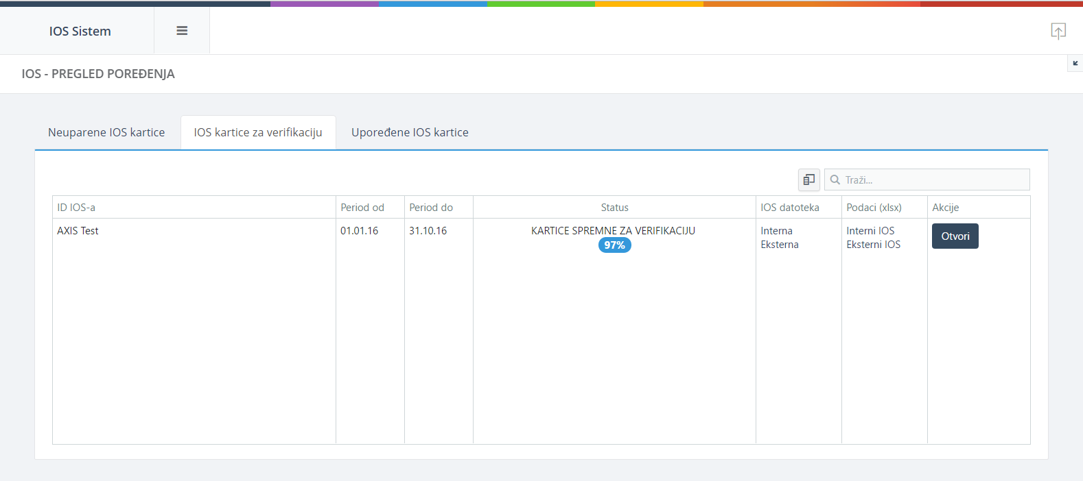 Das Axis-IOS System bietet eine Übersicht der ursprünglichen und verglichenen IOS Finanztabellen sowie eine vergleichende Übersicht über die Anzahl der Elemente und den Prozentsatz des Abgleichs.