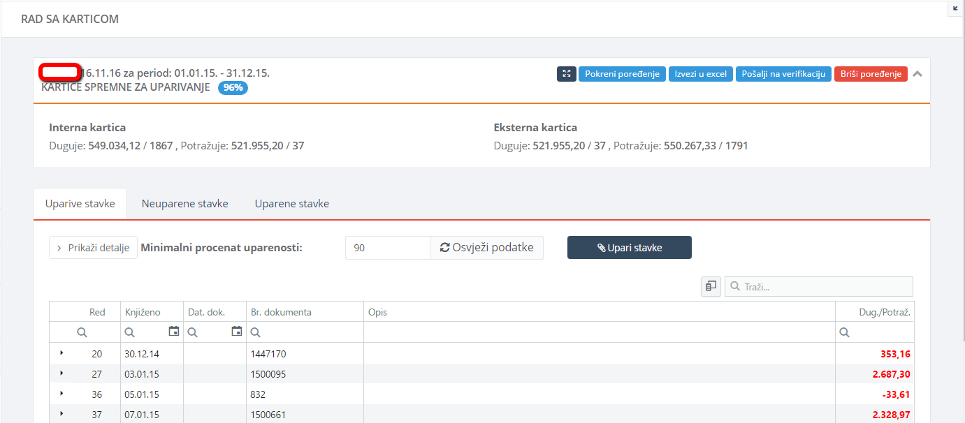 Falls Sie wünschen, ermöglicht unser System einen einfachen Kontrollprozess von Abgeglichenen Tabellen und deren Archivierung im System.
